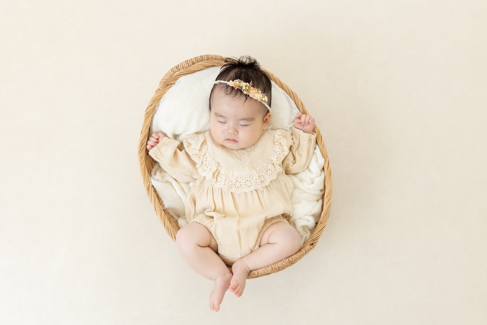 寝ている間に髪飾りも変えてお撮りしました!