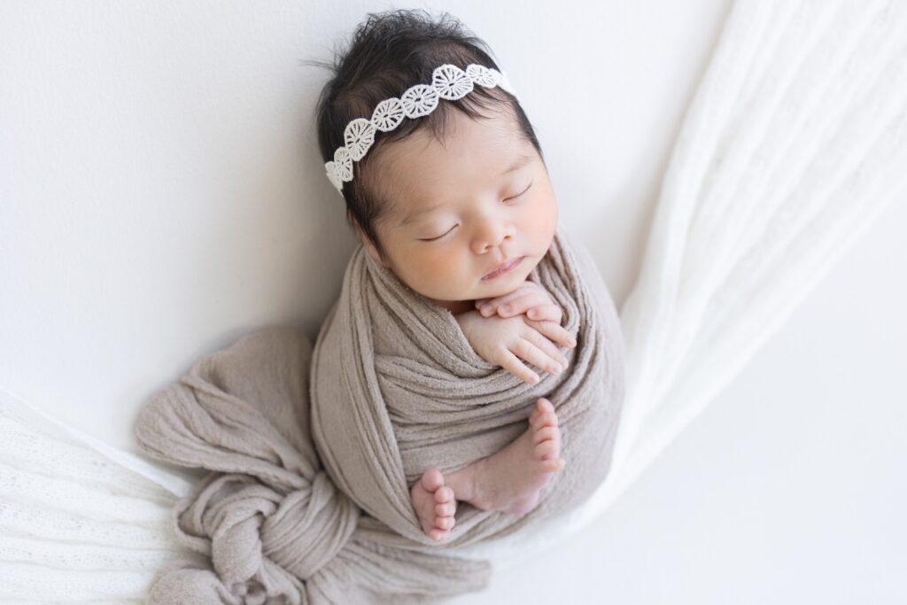 次はベージュのおくるみに巻き直します♪