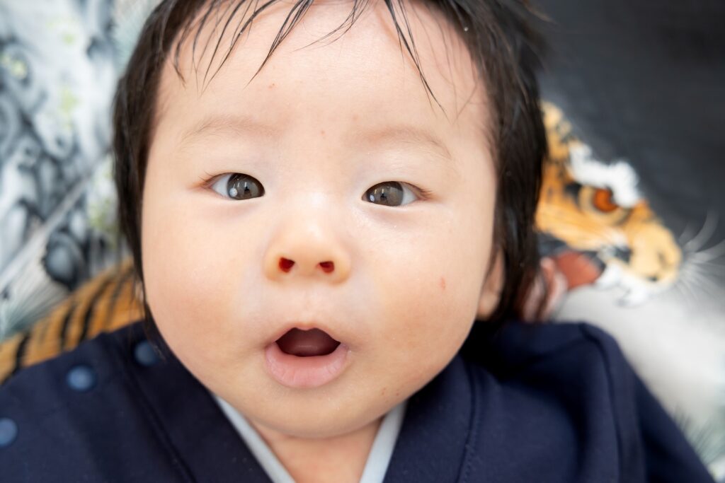 産着に合わせてクールな表情もバッチリ👌