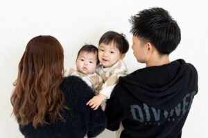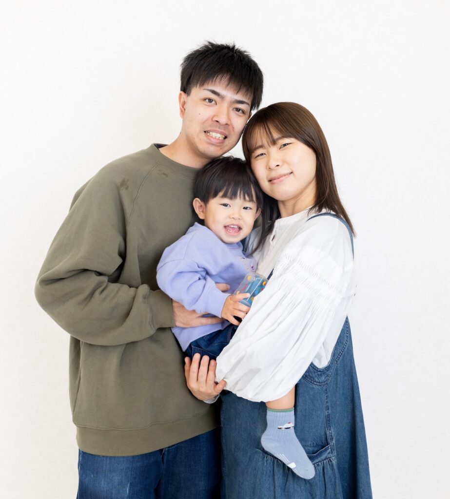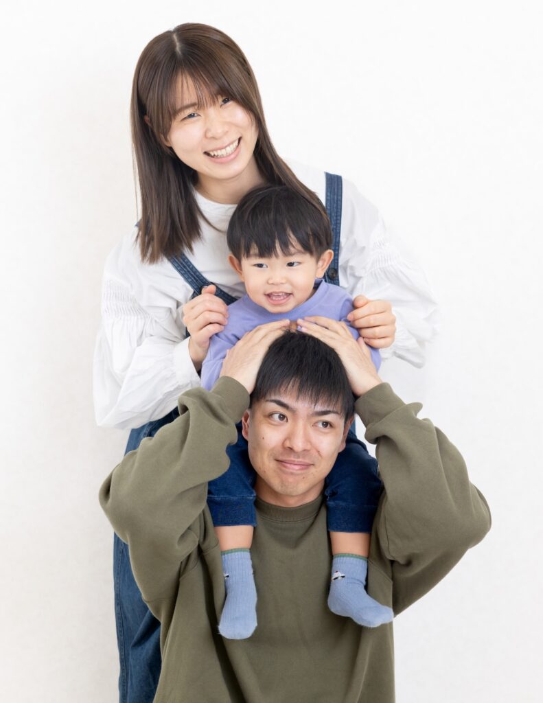 右側にママ、左側にパパ、真ん中に主役くん!
