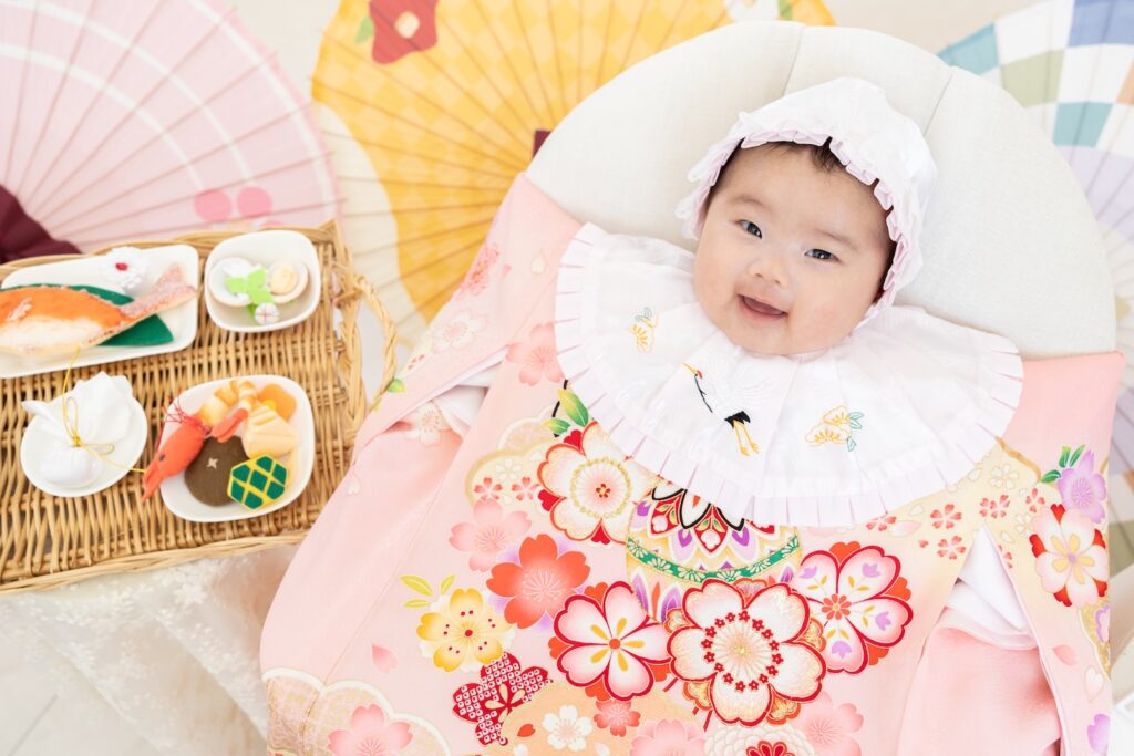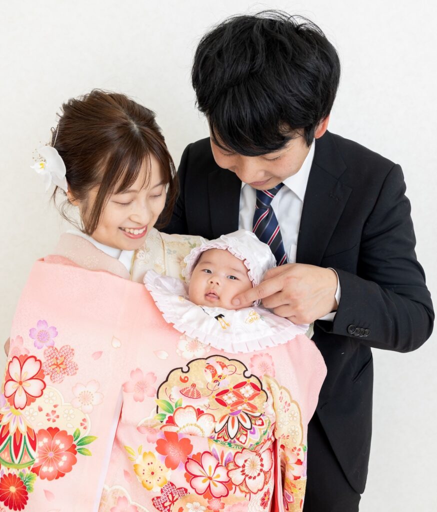 和装(産着)の撮影では、